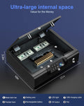 PORTABLE SIZE AND SPACE:The space of this gun safe can store 2-3 standard size pistols.It also can store valuables such as jewelry. The light and small size can also let you put it in the car, or the bedside table, drawer and other places, which is convenient to carry.