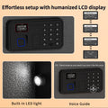 Additional Features: The pistol safe includes an LCD screen with a smart UI and voice guidance for easy setup and use. It can be switched to silent mode if preferred. Built-in automatic LED lighting ensures easy access in the dark, allowing for quick retrieval in emergencies