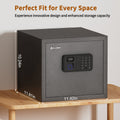 Versatile Storage and Robust Steel Structure: This biometric safe features a spacious design that securely holds up to 4 pistols, passports, and other valuables. It includes a removable shelf for efficient space usage. Constructed from high-tensile cold-rolled steel with a powder coating for corrosion resistance, it is suitable for living rooms, bedrooms, cloakrooms, offices, and RVs. The flexible storage accommodates various handguns and accessories